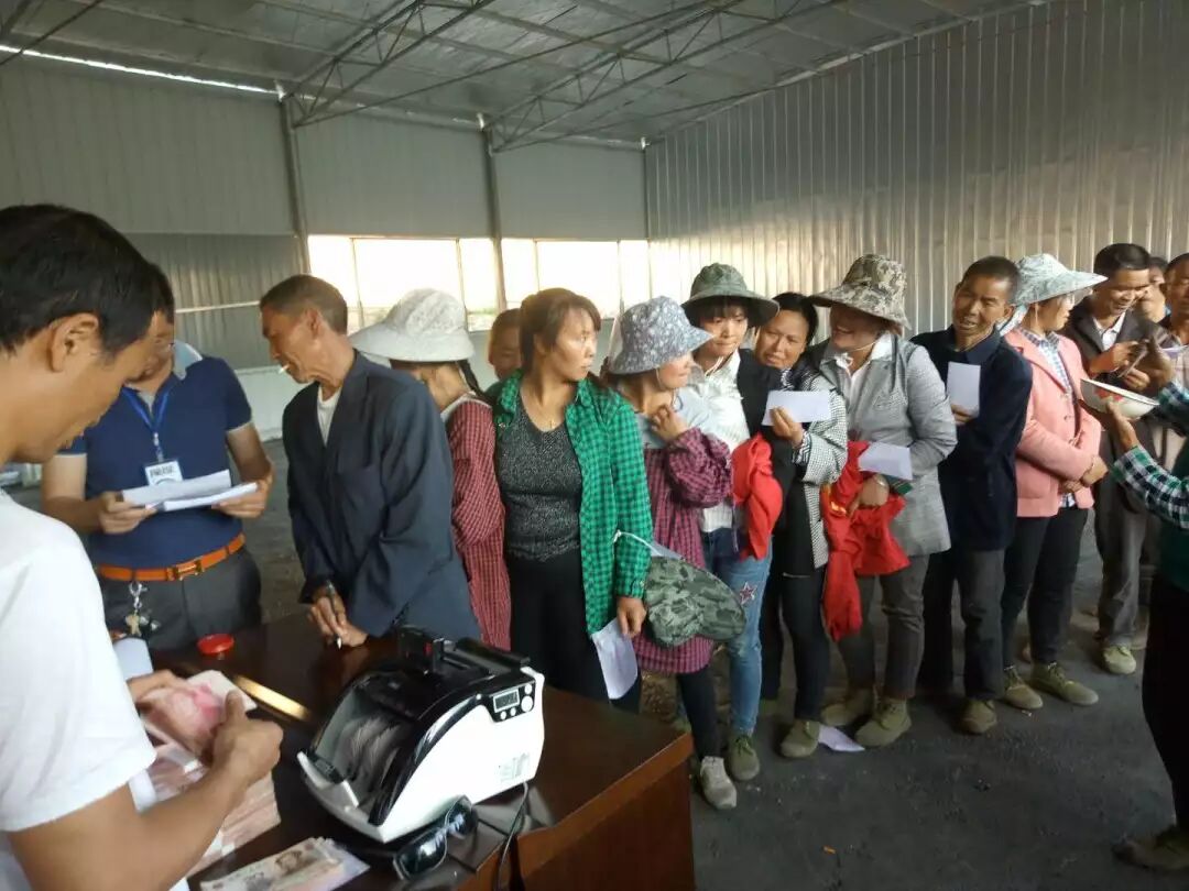 6月6日下午,龍瑤幽谷景區務工人員在景區餐廳排好長隊,公司總經理寧佐升親自到場為務工人員發放工資。